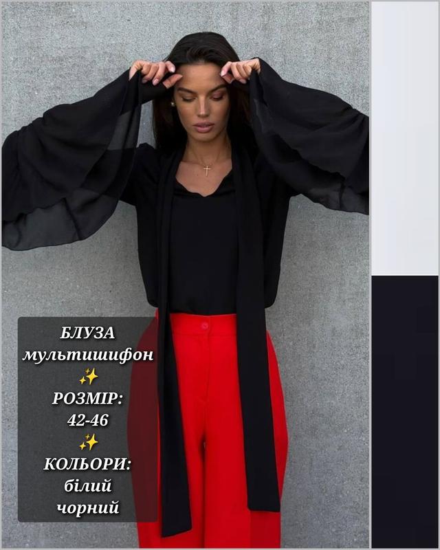 Женская блуза 🔥 ▪️мод: 310 ▪️размер: 42-46 ▪️тканина: мультишифон ▪️цвет: черный и белый Легкость, невесомость, романтичность и игривость – именно такие ассоциации вызывает шифоновая блузка. Эта вещь – идеальный вариант для повседневного и праздничного гардероба.