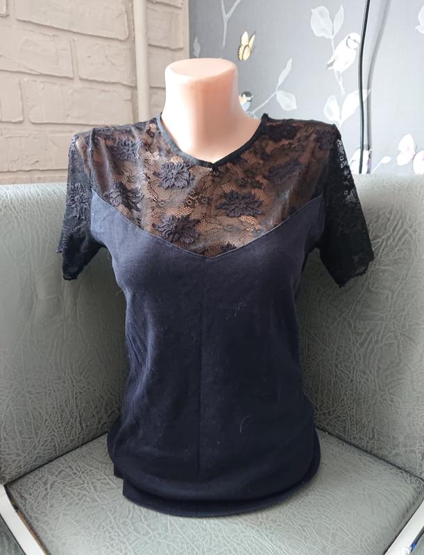 Черная блуза с кружевом в хорошем состоянии ткань хлопок Размер 46 /48 Замеры Длина 60 Пог 48 тянется 58