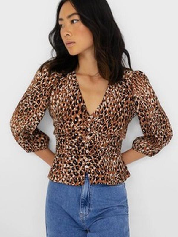 Стильная блуза на пуговицах с баской в талии Размер хс, ткань немного с жатым эффектом поэтому может подойти и на С. Легкая приятная к телу, без дефектов