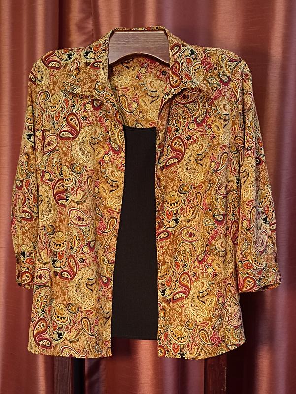 Блуза двойка, топ пришит. Длина - 66 см. плечи - 44 см. Полуобхват в груди - 59 см. Рукава - 45 см.