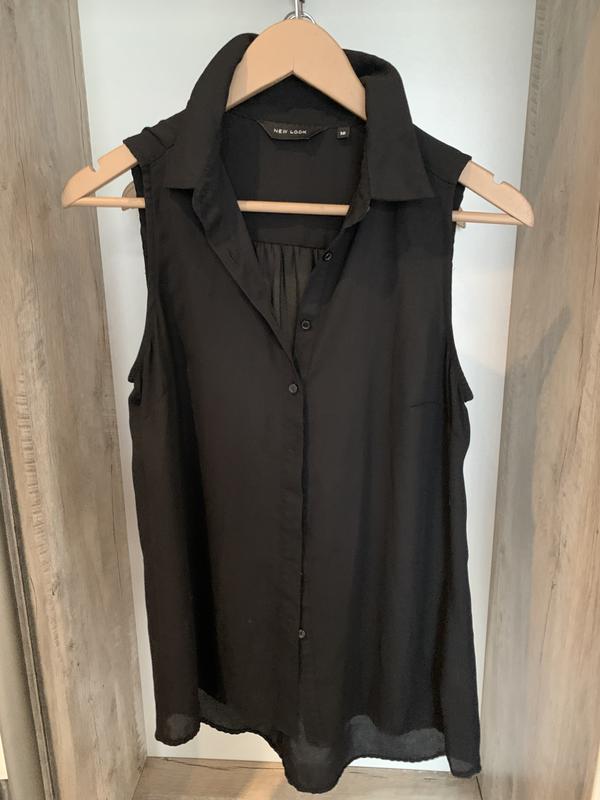 Шифоновая черная блузка, на пуговицах