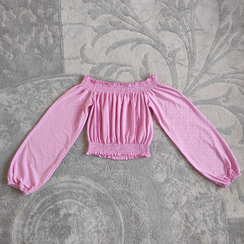 Полуобхват груди - 37 см Низ - 27 см ( резинка свободно тянется до 44 см ) Ширина горловины (фото 4) - 32 см ( резинка свободно тянется до 50 см) Длина рукава от горловины - 57 см Длина изделия спереди - 32 см Длина изделия по спинке - 34 см Ширина рукава - 19 см Блуза топ - состояние идеальное.