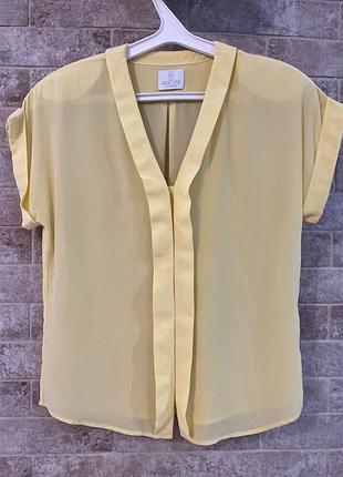 Блуза известного бренда , р. М, с подплечниками, отсутствует внутренняя бирка с составом, но скорее всего из шелка. Длина- 59 см, пог- 48 см.