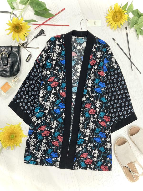 Новое цветочное кимоно Papaya С биркой. Без застежки. Маркировка S, но и на M хорошо подойдет. Длина 79 см. По бокам небольшие разрезы. Состав: вискоза