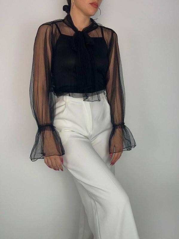 Блуза из сеточки в двух цветах: бежевый и черный Нижний топ - полиэстер Замеры: длина 59 см, длина рукавчика 64 см, ног 77 см, нот 79 см, ноб 79см Замеры нижнего топа: длина 47 см,ног 34 см, нот 36 см Фото пригляну!