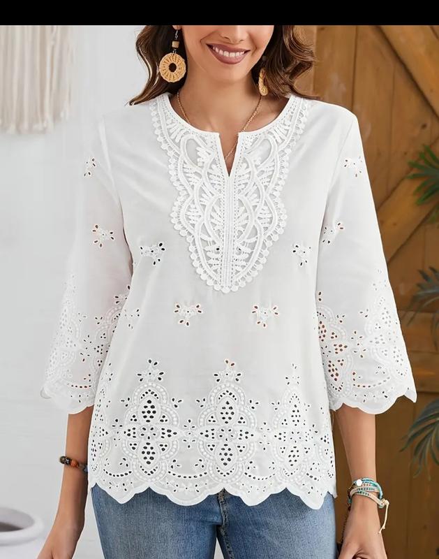 Красивая белая блуза "решетится", абсолютно новая, к сожалению, я прогадала с размером, Блуза полностью такая, как на модели (фото с сайта).Ткань не слишком мнется.