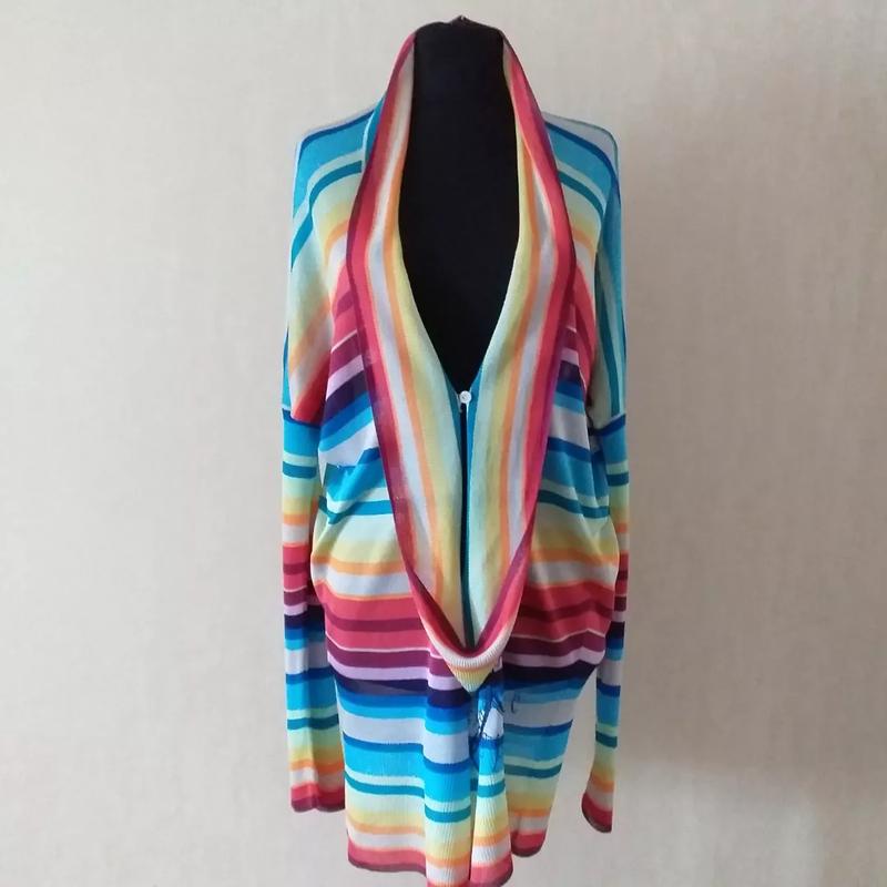 Яркая блуза известного испанского бренда, 100% вискоза. Идет как второй слой на топ или майку, интересная вещь хотя на фото немного странно смотрится, должна быть оверсайз, в состоянии новой вещи. Замеры: длина 86 см, по груди 120 см, талия 92 см, рукав спущен, от два 48 см. Есть еще много интересной женской и мужской одежды и обуви, смотрите все Мои объявления и подписи на страницу, регулярные публикации обновлений.