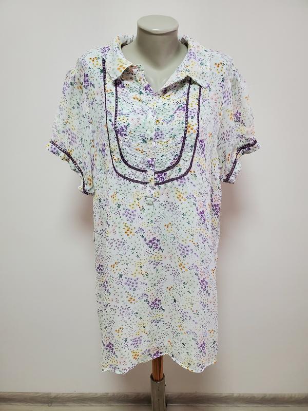 Ткань мягкая, легкая, типа шифон, на шифоновой вискозной подкладке. ПОГ 67, ПОТ 68, ПОБ 70, плечи 48, рукав 23, ПО проймы 31, длина 86 см.