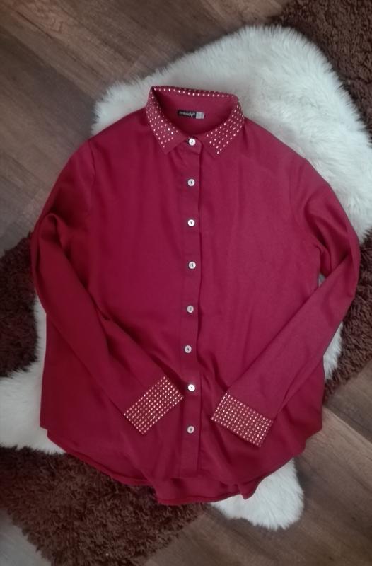 Красивая блуза с оформленным воротником и манжетами. Цвет более насыщенный чем на фото. Ткань похожа на шифон (не просвечивает). 97% котон, 3% эластан. Размер указан 12, но большемерит. Будет на 14-16 (наш 48) Замеры: - длина спереди 57-67 -длина сзади 59-73 -под мышками полуобхват 56 -длина рукава 63 см