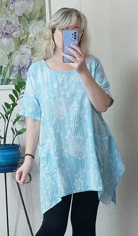 размер 52-54 фактурная блуза Италия льон/ бавовна пог 62 см поб 70 см длина 80 см в идеале