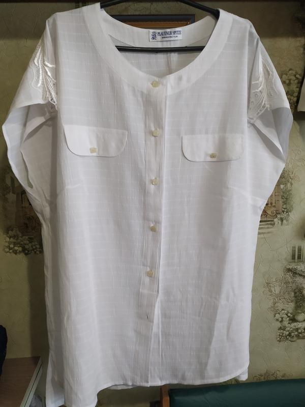 Белоснежная блуза натуральная украшена кружевом на рукавах очень нарядная тоненькая почти не мнется большой размер пог 66 поб 65 длина по спинке 75 не принимаю автоматически созданные заказы