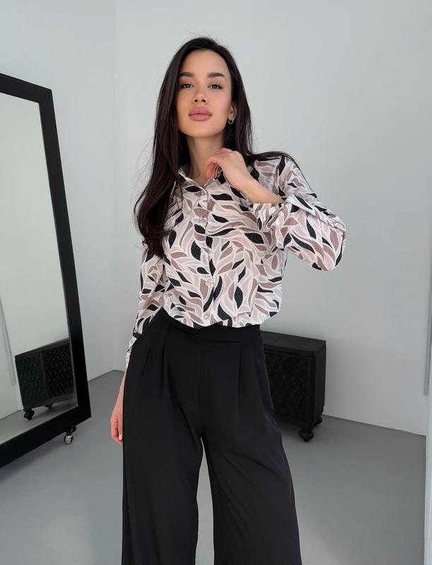 Блуза Фото пригляну! Мод. 836/1 Тканина: Софт принт Отличное качество! Размеры: 42-44, 46-48 Цвета: Белый принт, Черный принт, Черно-белый принт, Беж принт