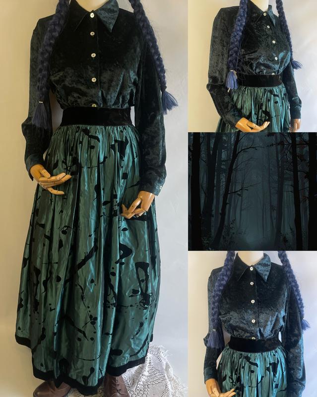 Винтажная велюровая бархатная изумрудная блуза рубашка изумрудного цвета готический стиль