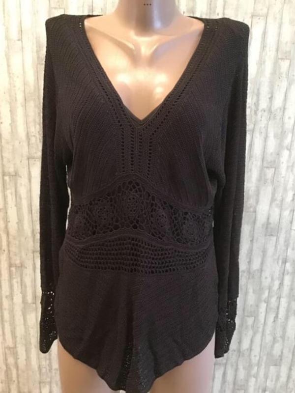 Красива ажурна блуза з віскози. Ефектні рукави, нерівні краї по низу - виглядає ошатно і вишукано 👍. Довжина 56-62, ПОГ 46 , ПОБІДИ 55, рукава 63 , плечі 40.