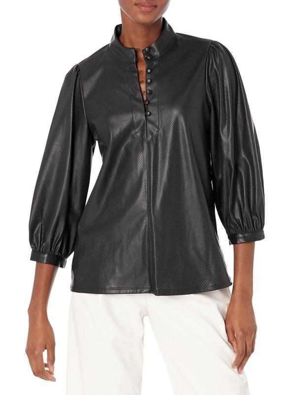 Женская блуза Karl Lagerfeld Paris. Стильная блуза из экокожи с перфорацией. Спереди застегивается на пуговицы до середины блузы. Рукава длины 3/4 с манжетами. Незаменима в гардеробе любой девушки. Можно носить как под брюки, так и под юбку. Отличное качество. Машинная стирка. Размеры: XS В Киеве самовывоз и примерка возможна в рабочие дни с 9.30 до 18.00. В небольшом и уютном шоуруме поможем подобрать Вам именно то, что нужно! Отправка Новой Почтой и УкрПочтой ежедневно. Доступен наложенный платеж без предоплаты. Курьерская доставка по Киеву.