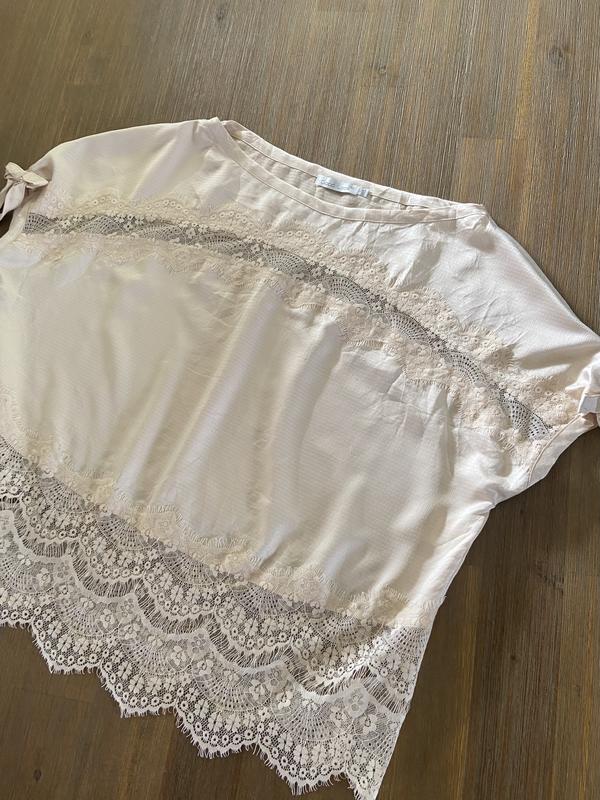 Оригінальна тоненька блуза ніжного кольору. Стан чудовий. Рукав спущений. Вільного крою. Розмір m/l Заміри: ПОГ- 62 ПОТ- 58 Довжина- 56 Низ- 59