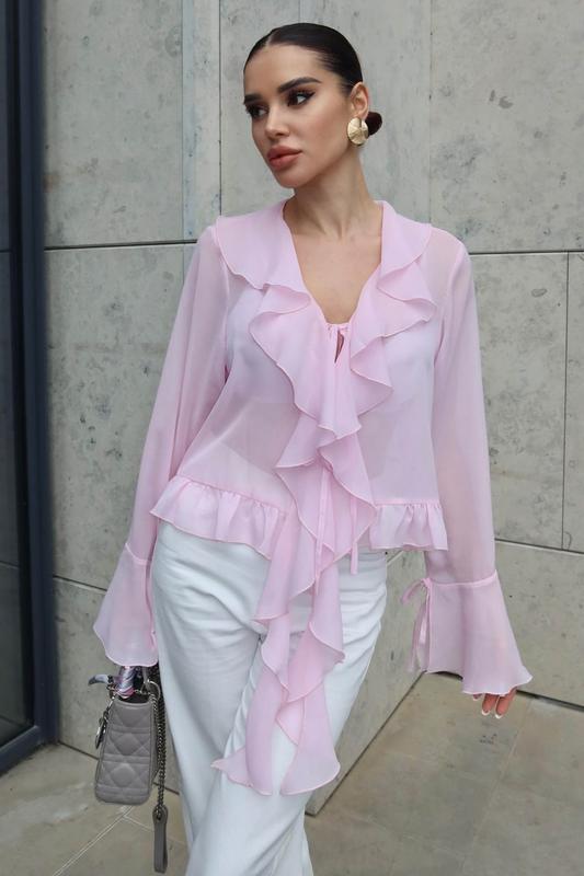 Блуза Камелия Стильна шифонова блуза на запах. Модель украшена изысканными воланами Материал: шифон Состав: 97% полиэстер, 3%эластан Размер: S, M, L Цвет: розовый, молоко Уход: ручная или щадящая машинная стирка до 30° Производство: Украина _______________________ Фактические замеры по изделию: S р Объем по груди: 108 см; Объем по груди: 110 см; Длина по спинке: 50 см; Объем рукава сверху: 44 см; Длина рукава: 64 см; Длина рукава по внутреннему шву: 52 см; М р Объем по груди: 112 см; Объем по груди: 114 см; Длина по спинке: 50 см; Объем рукава сверху: 45 см; Длина рукава: 64 см; Длина рукава по внутреннему шву: 51,5 см; L р Объем по груди: 116 см; Объем по груди: 118 см; Длина по спинке: 52 см; Объем рукава сверху: 46 см; Длина рукава: 64 см; Длина рукава по внутреннему шву: 51 см;