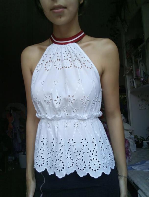 Белая блузка хлопок, хлопковая блуза с чокером, прошвенная блуза зара, белоснежная блузка...
