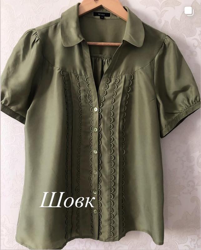 Вишукана шовкова блуза преміального британського бренду *🌟LINEA🌟 Ціновий сигмент бренду високий. В останньому фото ціна блузи з поліестру бренду. Приємний відтінок свіжої оливи. Нова🌟 ПОгрудей 50 Довжина 63 ПО по низу 54