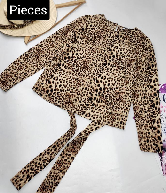 Блуза женская в леопардовый принт с длинными рукавами и завязками от бренда pieces xs