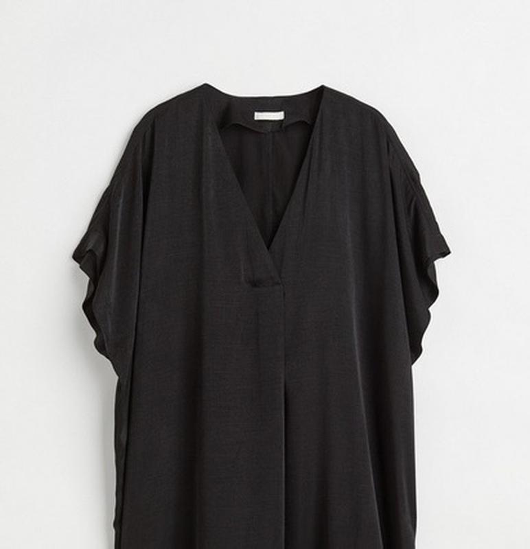 Чорна сатинова блуза H&M , вільного крою , двубортова на запах. Великий розмір. Ширина напівобхват - 77см. Довжина - 70см. Має невеличкий дефект, на останньому фото , під рукавом трошки розійшовся шов. Не помітно при носінні.