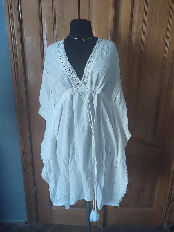 Блуза- туника белая с вышивкой и кружкой батал натуральная ткань