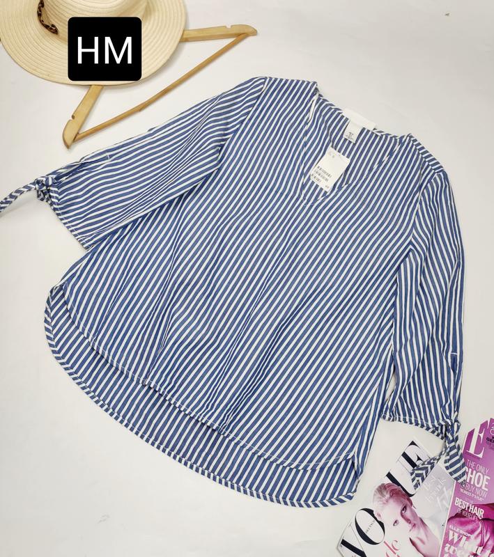 Блуза женская белого синего цвета в полоску с рукавами 3/4 от бренда hm s