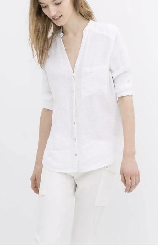 Рубашка блуза сорочка Zara льон лляна льняна. Длина 70 см, ПОГ 57 см, плечи 42 см, рукав 57 см