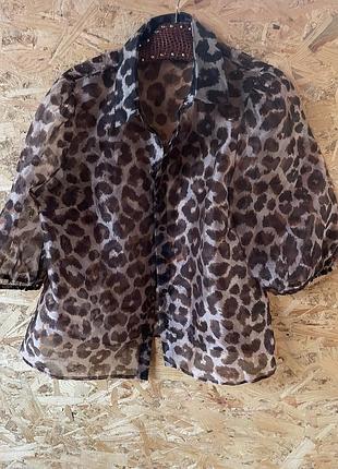 Стильная прозрачная блузка Tu с леопардовым принтом - размер 16 (UK) Элегантная блузка из воздушной прозрачной ткани, украшена ярким леопардовым узором. Идеально подходит для вечерних выходов, вечеринок или стильного повседневного образа. • Бренд: Tu | Woman • Размер: UK 16 (EU около 44) • Состояние: отличный • Материал: легкий, прозрачный, приятный к телу • Застежка: пуговицы спереди • Особенности: объемные рукава, трендовый принт, мягкий блеск ткани Можно носить как отдельную вещь или с топом под низ. Создает яркий и уверенный образ