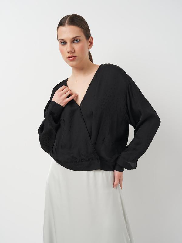 Блуза из вискозной ткани с длинными рукавами и спереди с запахом, складками и потайными кнопками 0525096_черн_09