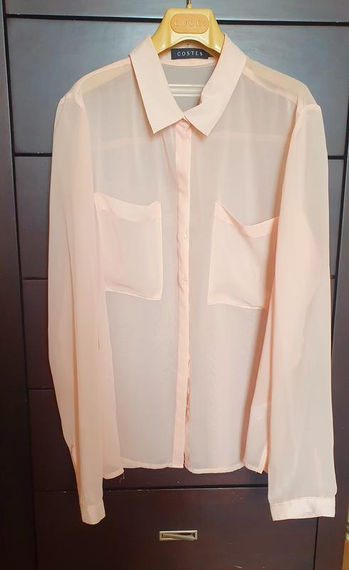 Лёгкая блузка нежно кораллового цвета. Два накладных кармана на груди