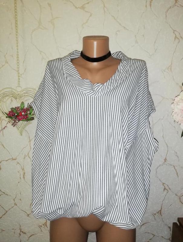 Легкая полосатая блузка, туника , свободного объемного силуэта. На груди оригинальные внутренние карманы. Снизу широкая резинка. Можно носить с напуском. В идеальном состоянии, без следов носки. Размер указан 14 (48-50) ПОГ-69 см ПОБ-40-60 (резинка) Длина по спинке-78 см