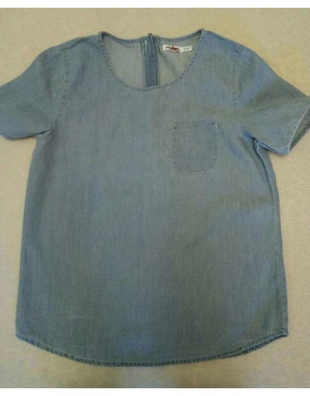 Блузочка Boden. 15-16лет. Підходить на 44р. Тонкий джинс блакитний. По низу заокруглена. Довжина по спинці 62cm Плечі 38см Шир. Між пахвами 48 см