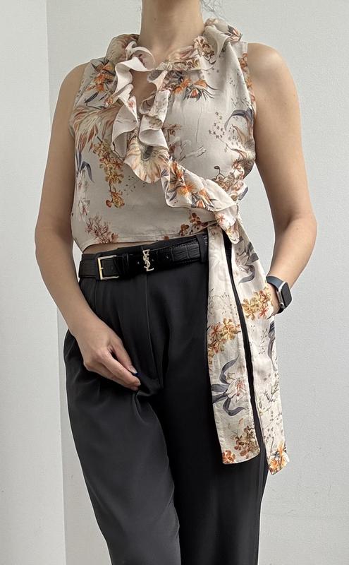 Блуза з рюшами, верхній шар 100% шовк, підкладка віскоза. Довжина 40, плечі 29, пог 45