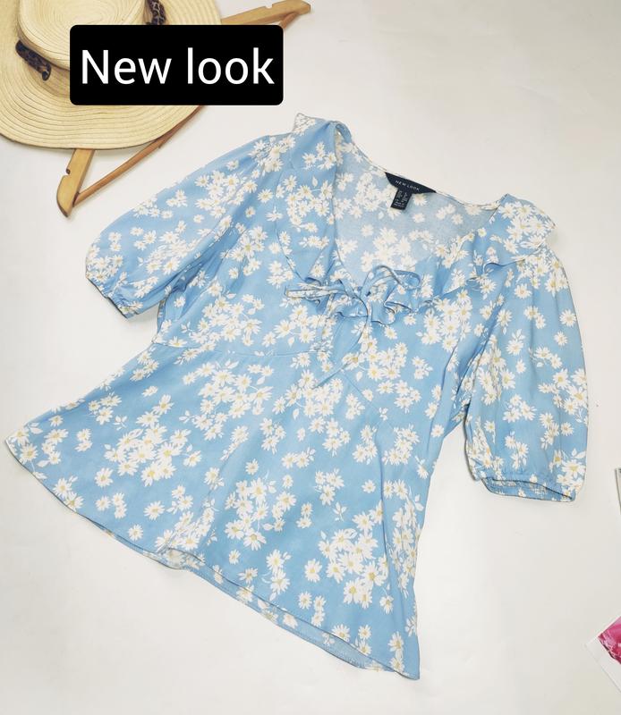 Блуза женская голубого цвета в цветочный принт от бренда new look s