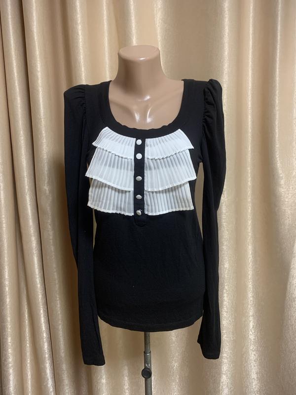 Віскозна чорна блузка 3 suissescollection з білою пліссірованою манішкою розмір 34/36