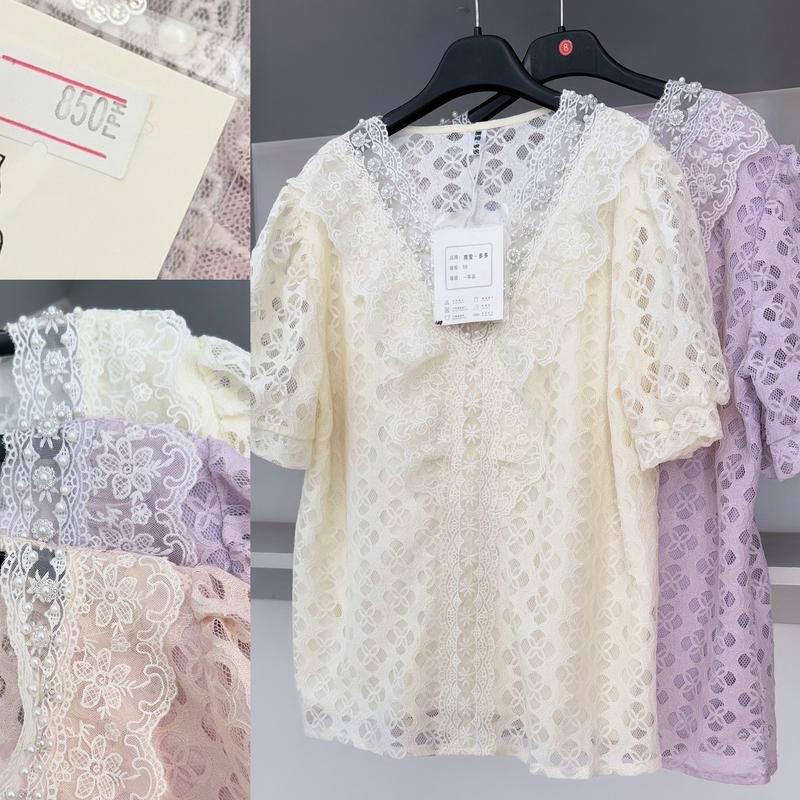 Вишукані блузи 🥰🥰 В трьох кольорах: молочний, бузок, пудра💛💜🩷 Якість шикарна 👍 Розмір універсальний Пог 52, рукав 25, довжина 56см. Тканина тягнеться. Ціна зі знижкою 350грн🔥🔥🔥 Попередня ціна 850грн. ❌