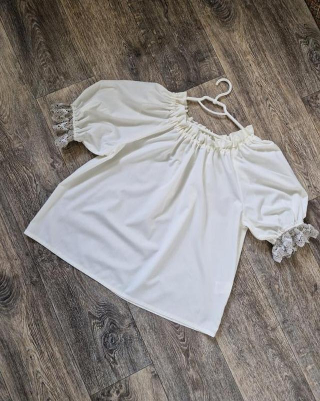 Блуза молочного цвета с рукавами буфами и кружевом, на размер L-XL, можно и на М, будет более объемно. Состояние новой. Замеры: Подмышками 65 ПОТ 65 Длина 66 Отправлю безопасной доставкой, если новым - послеплатой по минимальной предоплате