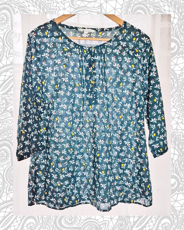 Легкая, почти невесомая блуза с растительным узором изумрудного цвета из органического хлопка. Seasalt Cornwall, размер 16. Замеры полуоборота: Плечи 40, Груди 55, Талия 58, Длина 67, Пройма 23, Рукав 45. Состав: 100% органический хлопок Состояние: новая без бирки Отдам при 380 грн. #блузасмарадовая #блухлопок #seasaltcornwall
