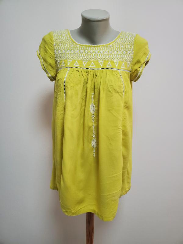 Ткань мягкая, легкая, приятная на ощупь, не тянется. ПОГ 45, ПОТ 68, ПОБ 73, плечи 35, рукав 10, длина 68 см.