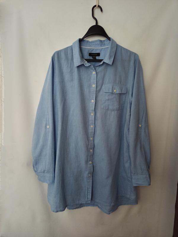 Легкая брендовая блуза нежного голубого цвета, из натуральной ткани, Пог 55, Длина 61-63, рукав 39, ширина низа 63