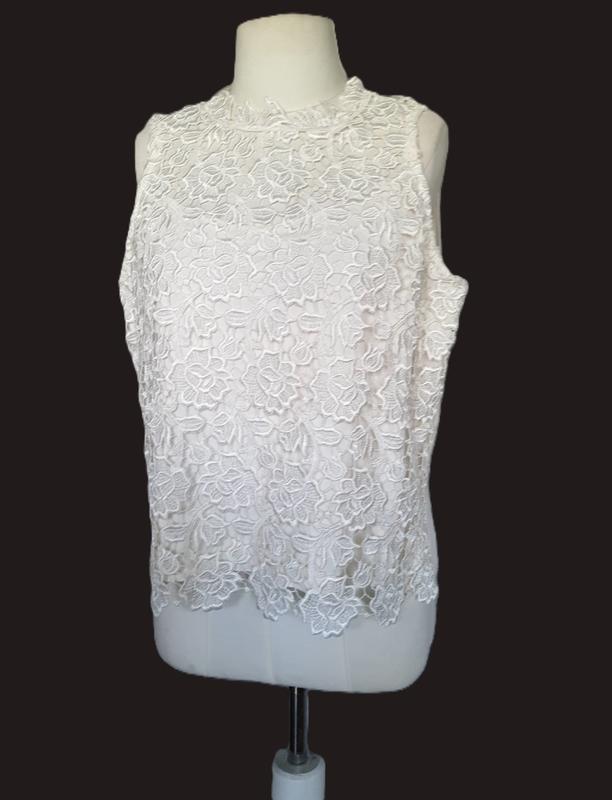 Женская молочная кружевная блуза, летняя блузка кружево Kaleidoscope Бренд, состав и цвет на фото в одном размере, размер 20, но ориентируемся на замеры: плечи 34 см, ширина горловины 21 см, ширина плеча см ПО груди 54 см, талии 52 см, внизу 57 см. ПО пройми 25 см Длина от плеча 58 см, Под кружевом есть подкладка Помимо кружева тянется.