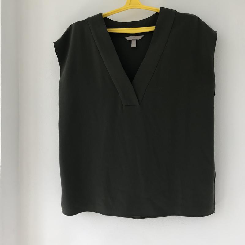 Блуза H&M зеленого кольору(блище до хакі), топ, V-образний виріз . Заміри півобхват грудей 51 см, в плечах 54см, довжина 60 см