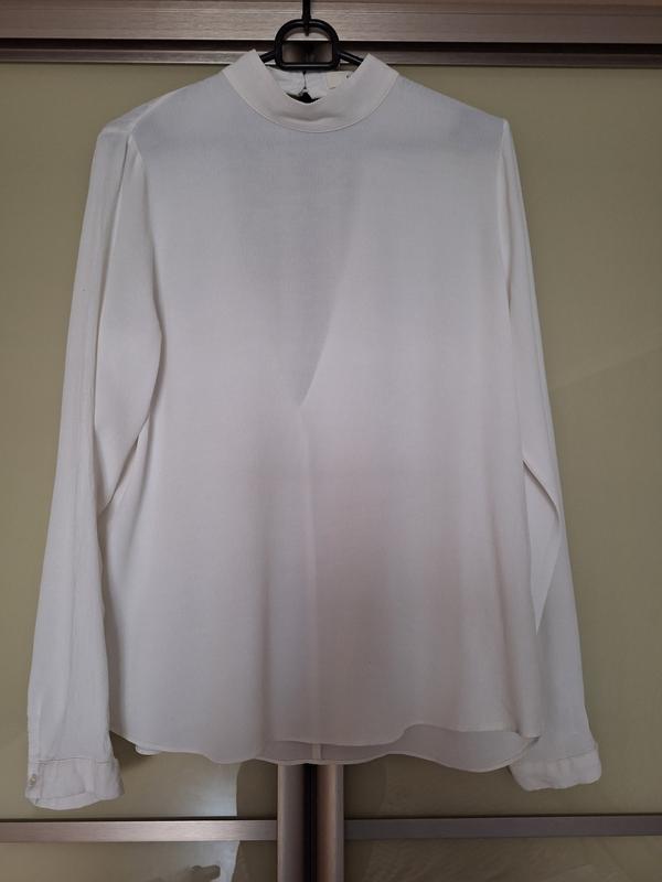 элегантная блузка, можно легко комбинировать с юбками и брюками, имеет небольшой вырез на спине, можно носить под обычный бюстгальтер. длина блузы 61 см, длина рукава 60 см, полуобхват груди 53 см,