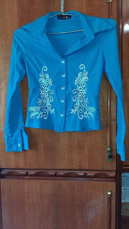 Уважно читайте умови пересилки! Пересилка товара укроштой на сумму от 150 гривен с Оплатой на карту. Безопасным заветом пересашиваю товар на сумму от 300 гривен. На передвижные элементы безопасной оплатой не пересасываю, только полная оплата на карту. Пересласка товара новой по почте от 200 гривен, оплата только на карту. Перед любой покупкой, любого товара писать продавцу для уточнения Блуза голубая с аппликацией белого цвета, талия полуохват 35см, длина 51см, рукав 59см