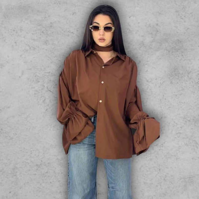 Нежная и трендовая — эта рубашка в стиле бохо сочетается с чем угодно. Плотная ткань и пояс из комплекта формируют утончённый и свободный образ на каждый день. шоколадний коричневый Рубашка Мод.: 032 Ткань: плотный софт Размер: универсальный (42-46) Цвет: белый, бургунди, капучино Есть видео обзор