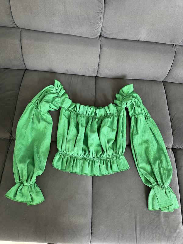 Стан нової речі, бо вдягалась раз. Тканина, що не мнеться. З відкритими плечима, та в актуальному кольорі цього сезону. Дуже класно виглядає на фігурі, можна міксувати, як під брюки, шорти та спідниці. На ризинці, підійде на розмір S-M