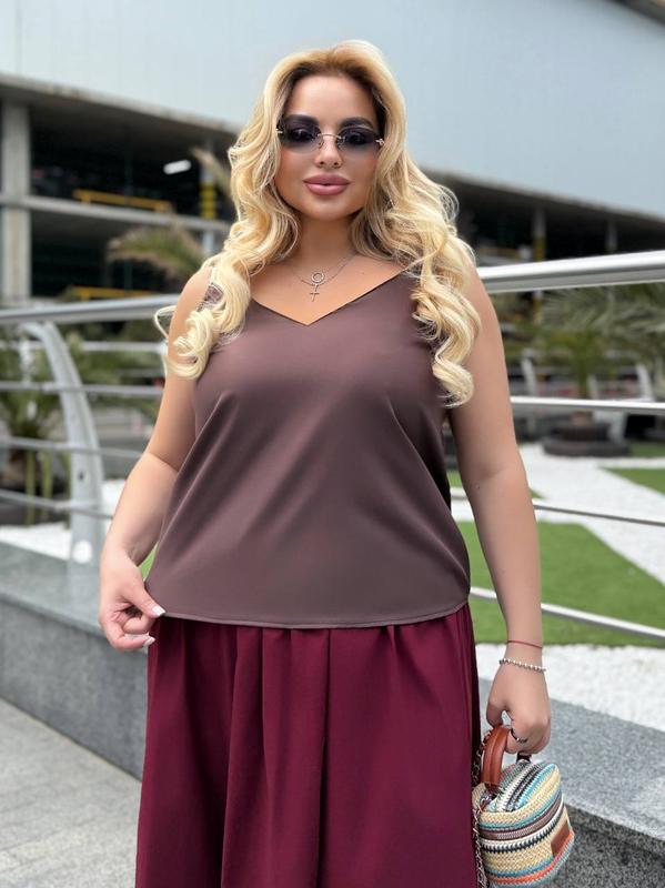 Майка #2176 – именно для тебя, если хочешь выглядеть женственно, чувствовать комфорт и при этом иметь выбор цвета под настроение: бордо, малина, коричневый, черный, белый 🍒🍫🖤 Размеры до 60 - мы знаем: 👉 большое — это не «занадто» 👉 большое – это роскошно 👉 большое — это уверенно ⠀ 💃🏼 Ткань “софт” - мягкая, приятная к телу 📌 Завязки на плечах – регулируй как хочешь 42-44(1), 46-48(2) 50-52(3), 54-56(4), 58-60(5)6 42/44 ПОГ 45 см Высота до бретель 44 см Длина бретеля 25 см 46/48 ПОГ 50 см Высота до бретель 46 см Длина бретеля 25 см 50/52 ПОГ 55 см Высота до бретель 48 см Длина бретеля 25 см 54/56 ПОГ 60 см Высота до бретель 50 см Длина бретеля 25 см 58/60 ПОГ 65 см Высота до бретель 55 см Длина бретель 25 см