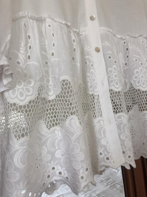 Блуза відомого бренду Zara з вишивкою та мереживом Напівокружність під рукавами 51 Довжина рукава 43 Плечі 41 Довжина по спині 70 (включаючи 30 см оброки) Застібається на 5 ґудзиків ( перламутрові, з мушлі) 100% бавовна