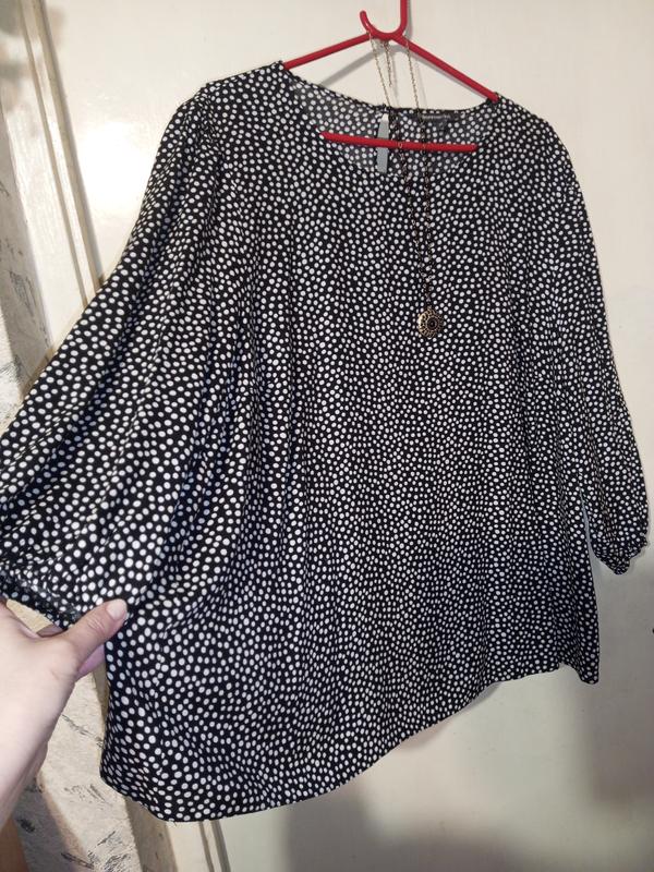 Натуральная женственная легкая блузка-трапеция в горошек батал bonmarche индия